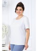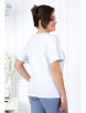 Джемпер полуприлегающего силуэта, длиной по середине спинки 63 см. Перед с нагрудными вытачками, выходящими из пройм. Из горловины вниз застрочены 4 складки. Горловина переда и спинки округлой формы, по переду углубленная. Срезы горловин окантованы косой бейкой. Рукава втачные, одношовные. Длина рукава 26 см.