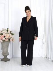 Этот костюм – классика, которая не выходит из моды. Благодаря своему универсальному крою он станет отличным выбором для офисного стиля, подчеркнет ваш статус на деловых встречах и станет элегантным решением для праздничного выхода. Жакет выполнен в классическом стиле с двубортной застежкой на декоративные пуговицы, отложным воротником и элегантными лацканами, которые придают образу нотку аристократичности.