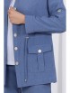 Жакет прямого силуэта, выполнен из ткани «лен-вишер». Модель без подкладки, с плечевыми накладками и однобортной внешней застежкой с отрезными планками на 7 петель и 7 пуговиц. Перед с нагрудными вытачками, выходящими из пройм. В нижней части переда настрочены накладные карманы с бантовой складкой посередине кармана и клапаны, застегивающиеся на 1 петлю и 1 пуговицу. По спинке и частично по переду настрочена кулиса, в которую втянут поясок из основной ткани. Для регулировки сборки по кулисе предусмотрены фиксаторы, концы пояса оформлены наконечниками. Горловина округлой формы со стояче-отложным воротником на отрезной стойке. Рукав втачной, длинный, с притачной манжетой, застегивающейся на 1 петлю и 1 пуговицу; по середине рукава настрочена пата, застегивающаяся на 1 петлю и 1 пуговицу, что позволяет регулировать длину рукава. Длина жакета - 71 см (46-50 р-р), 72 см (52-60 р-р), 73 см (62-66 р-р). Длина рукава (с манжетой) - 61 см.