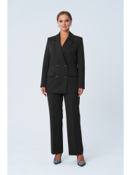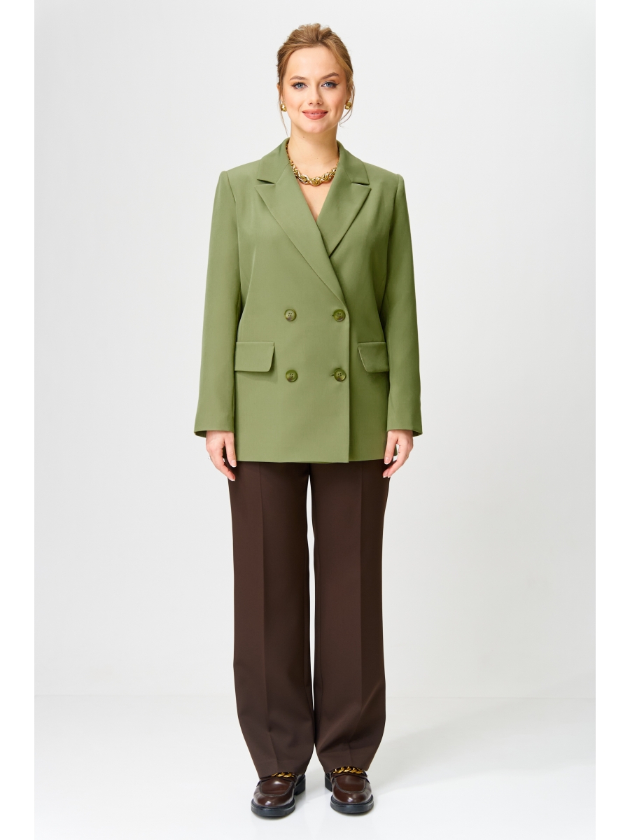 Жакет свободного силуэта, с двубортной с застежкой на четыре пуговицы. Перед с рельефом, с нагрудной вытачкой из горловины. По переду настрочены декоративные клапаны. Спинка со средним швом и рельефами. Рукав двухшовный втачной. Жакет на подкладке.