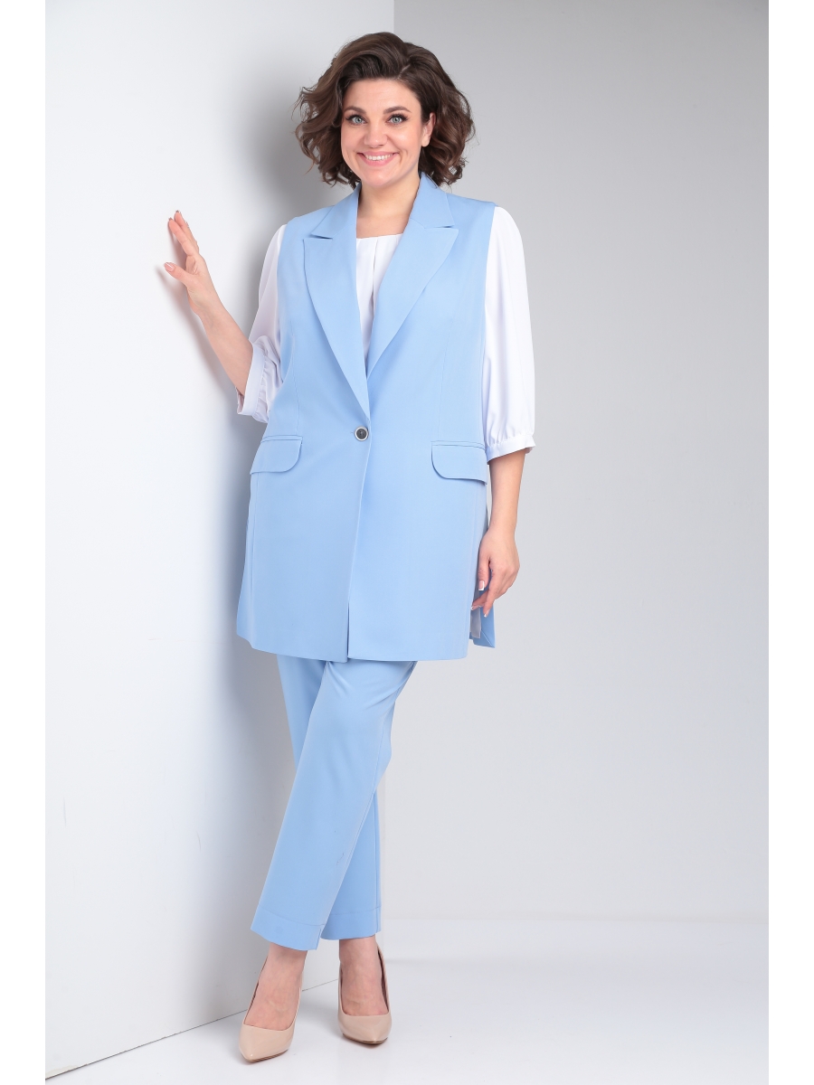 Комплект женский тройка, состоит из удлиненного жилета и брюк в классическом стиле, блузки свободного покроя.