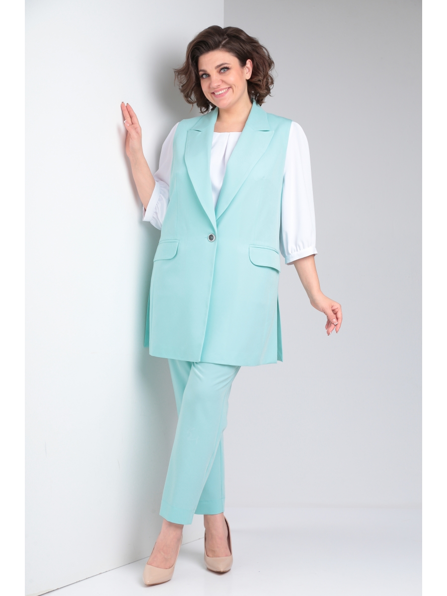 Комплект женский тройка, состоит из удлиненного жилета и брюк в классическом стиле, блузки свободного покроя.