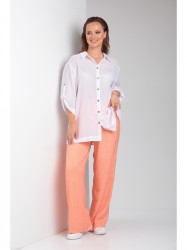Комплект женский свободного покроя состоит из рубашки и брюк.