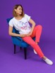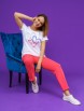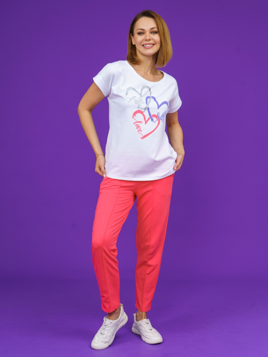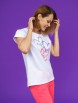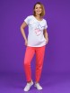 Модель состоит из футболки и брюк-капри. Футболка свободного силуэта с округлой горловиной, цельнокроеным рукавом.