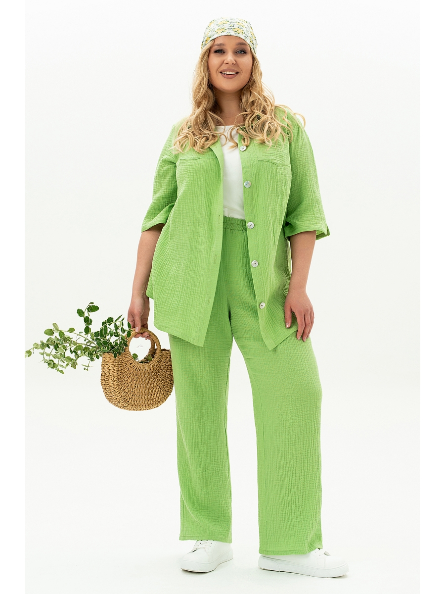 Ищете идеальный костюм, который сочетает в себе комфорт и стиль? Обратите внимание на наш женский брючный костюм из муслиновой ткани! Этот комплект станет Вашим незаменимым спутником как для домашнего отдыха, так и для прогулок на свежем воздухе. Изготовленный из 100% хлопка, он обеспечивает отличную воздухопроницаемость и легкость, что особенно актуально в жаркие летние дни. Муслин — это дышащий материал, который быстро сохнет, что делает его идеальным выбором для активных женщин. Вы сможете не беспокоиться о стирке, ведь этот комплект легко стирать и он не требует особого ухода. Костюм представлен в универсальном дизайне, который подойдет для любого повода. Стильный, яркий цвет добавит яркости в Ваш гардероб. Брюки на резинке с карманами-хулиганами в боковых швах. Силуэт брюк прямой. Рубашка дополнена накладными карманами по переду и кокетками на спинке и полочке. Перед и спинка рубашки - разноуровневые. Рукав с увеличенной линией плеча, длиной до локтя и с небольшими разрезами. На полочке пришиты пуговицы из натуральной ракушки.