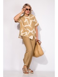 Стильный летний костюм, состоящий из удлиненной туники свободного покроя и брюк.