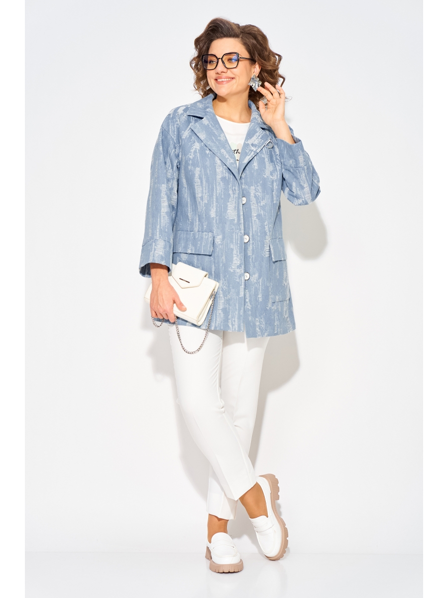 Джинсовый женский жакет идеальный выбор для создания стильного весенне-летнего образа 2026 года. Современный, светлый дизайн с эффектом гранжа придает свою изюминку изделию. Модель свободного силуэта, на спущенном плечевом поясе. Воротник отложной, английского типа с подбортом. Застежка центральная на петли и пуговицы. По полочке и спинке расположены продольные рельефы для комфортного прилегания. Спереди расположены накладные карманы с клапаном.