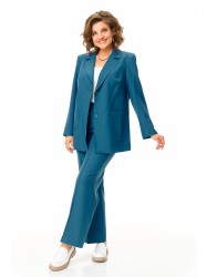 Жакет частично на подкладке. Силуэт прямой. Покрой рукава втачной двушовный, шлица в локтевом шве. Воротник пиджачный. По переду большие накладные карманы с тонким застроченым кантом. Застежка центральная на 2 петли и пуговицы. На спинке дакета выполнен декоративный элемент в виде кармана с листочкой и подреза.
