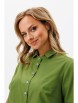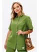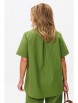 Блуза прямого силуэта, длиной чуть ниже линии бедер, со смещенным боковым швом и фигурным низом. По переду нагрудные вытачки, центральная застежка на петли-пуговицы. По спинке отрезная кокетка, от которой по центру заложена встречная складка для свободы движения. Горловина оформлена рубашечным воротником со стойкой. Рукав втачной, короткий с притачной манжетой. По низу переда пришивной декоративный элемент.