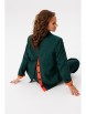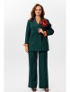 Жакет прямого кроя на подкладке. По переду нагрудные вытачки, функциональные карманы с листочкой, центральная двубортная застежка на петли-пуговицы. Горловина оформлена воротником пиджачного типа с лацканом. Спинка со средним швом, шлицей-планкой из отделочной ткани, застегивающейся на петли-пуговицы. Рукава втачные, двухшовные. Жакет декорирван съемным цветком из отделочной ткани.
