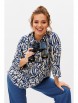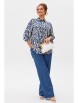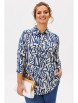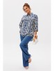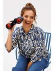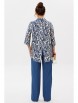 Блуза свободного силуэта, выполненная из легкой струящейся ткани (не тянется) с модным принтом. По переду центральная застежка на петли-пуговицы. По спинке отрезная кокетка, от которой заложена складка для свободы движения. В нижней части спинки горизонтальный подрез с разрезом по середине. Низ блузы фигурной формы. Горловина оформлена рубашечным воротником со стойкой. Рукав втачной, одношовный, длиной ¾.