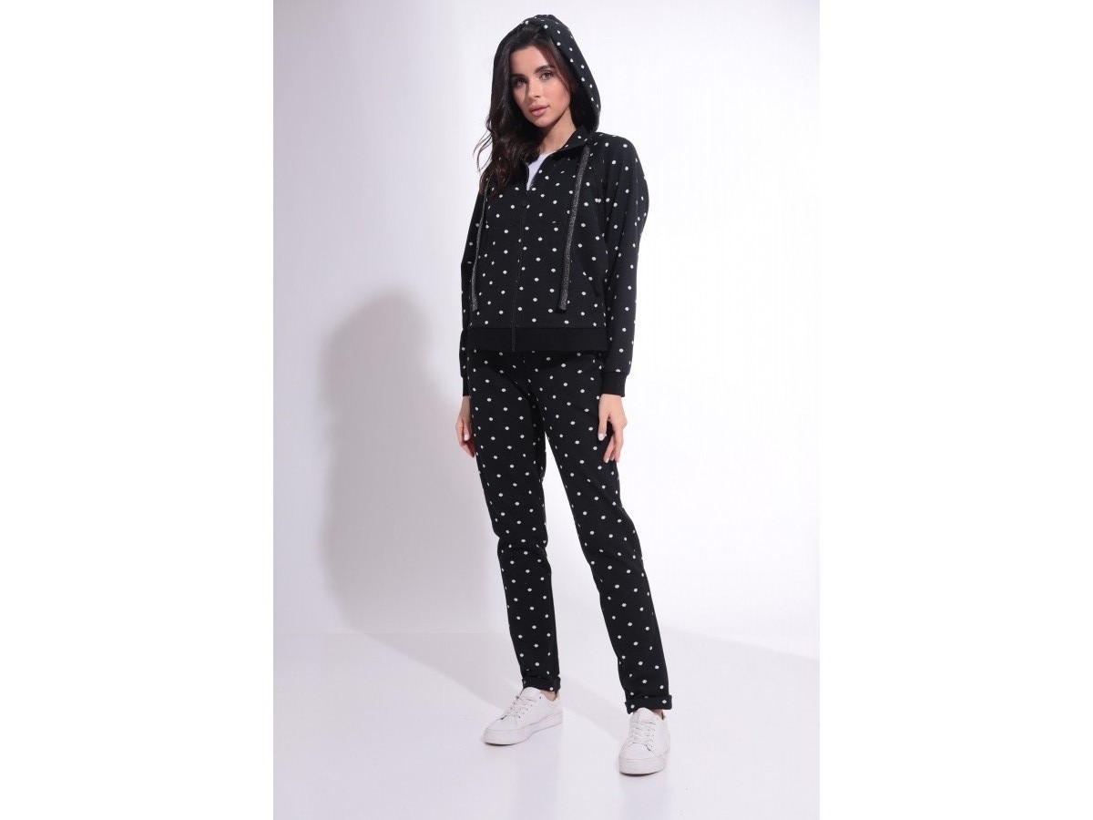 Оформить заказ →Универсальный женский костюм выполнен из качественного трикотажа в принт «горошек», средний по плотности. Брюки свободные с высокой посадкой, заужены к низу на отложной манжете, с боковыми карманами, по поясу резинка. Джемпер свободного прилегания на молнии с капюшоном и карманами кенгуру. Оба изделия можно с легкостью комбинировать с различными вещами и обувью Вашего гардероба. Рост модели на фото 171 см.