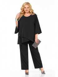 Нарядный женский комплект-двойка, состоящий из туники и брюк, выполнен из струящейся ткани. Ассиметричный крой в сочетании со стильной фурнитурой создаёт яркий притягательный образ для праздничных событий.