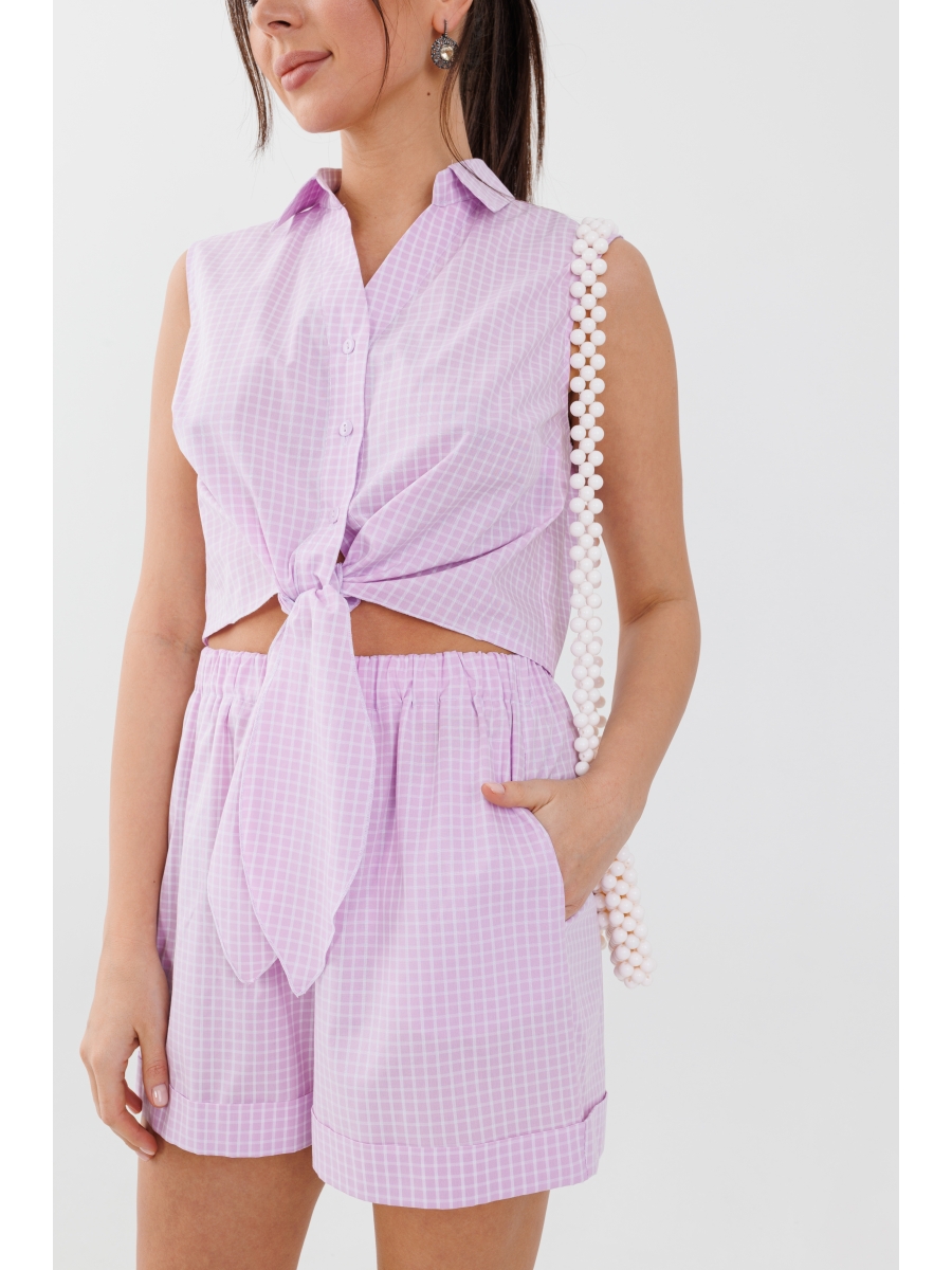Создайте неповторимый образ этим летним костюмом из 100% турецкого премиального хлопка! Этот стильный комплект из шорт и топа на завязке спереди идеально подходит для прогулок и отдыха в жаркие дни.