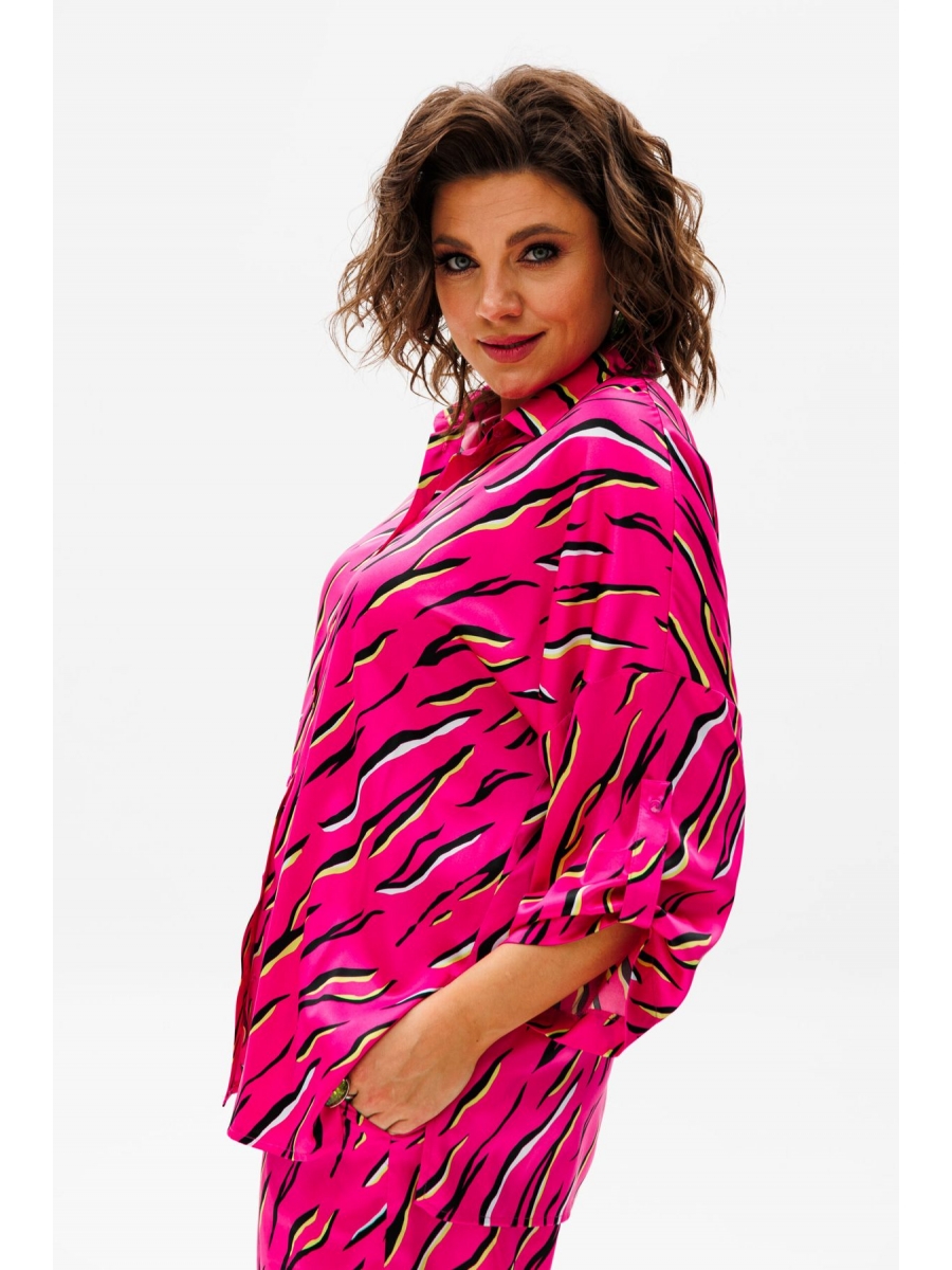 Рубашка имеет привлекательную яркую расцветку, которая напоминает сочные цвета лета. Она добавит игривости и свежести в образ. Важной особенностью этой рубашки являются рукава на пате, которые можно зафиксировать, сделав их короче. Это позволит настроить длину рукавов в соответствии с предпочтением.