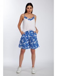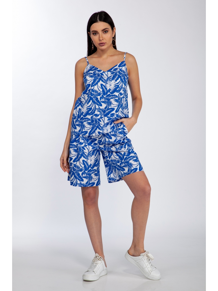 Летний двухпредметный костюм, состоящий из топа и шорт.