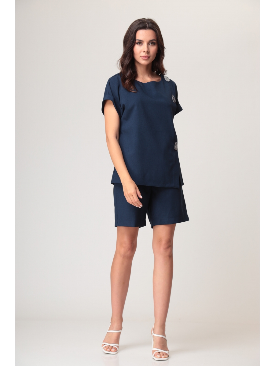 Костюм женский, полуприлегающего силуэта, состоит из блузки и шорт.