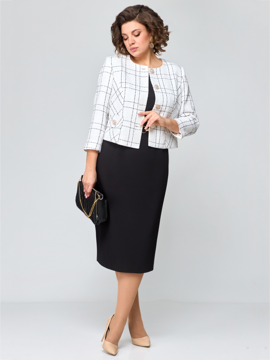 Красивый и стильный комплект в элегантном сочетании однотонного платья и жакета в клетку подойдет и для строгого образа, и для создания светлого, яркого и нежного лука с романтичными мотивами.