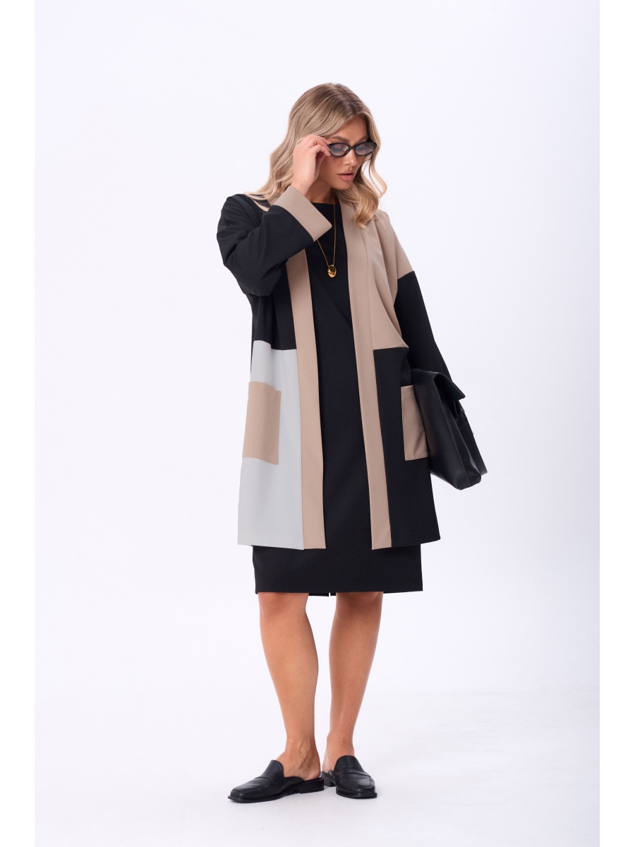 Плательный костюм артикул: 1276.1 черный/ черный+серый+беж от Anastasia - вид 1