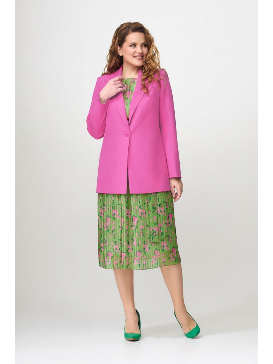 Жакет полуприлегающего силуэта с однобортной застежкой на одну пуговицу и воротником пиджачного типа. Перед и спинка с рельефами из проймы. По спинке средний шов. Рукав втачной двухшовный. Жакет на подкладке.
