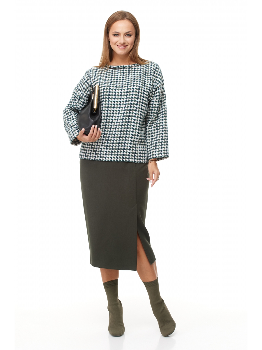 Комплект женский 2-х предмеиный (блузка, юбка) из текстилькой ткани.