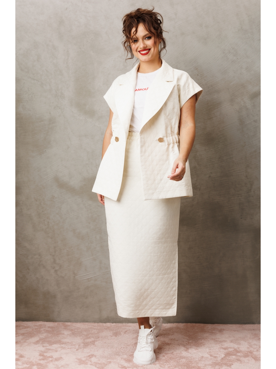 Костюм женский 2-х предметный (жилет, юбка) из стеганной ткани станет отличным дополнением к Вашему гардеробу.
