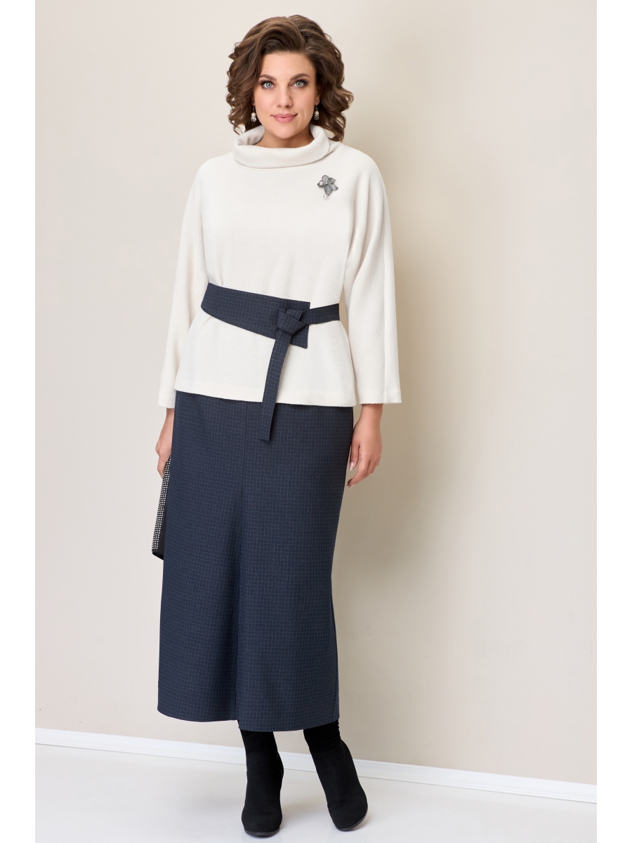 Изысканный комплект из трикотажного джемпера и юбки из текстильной ткани.