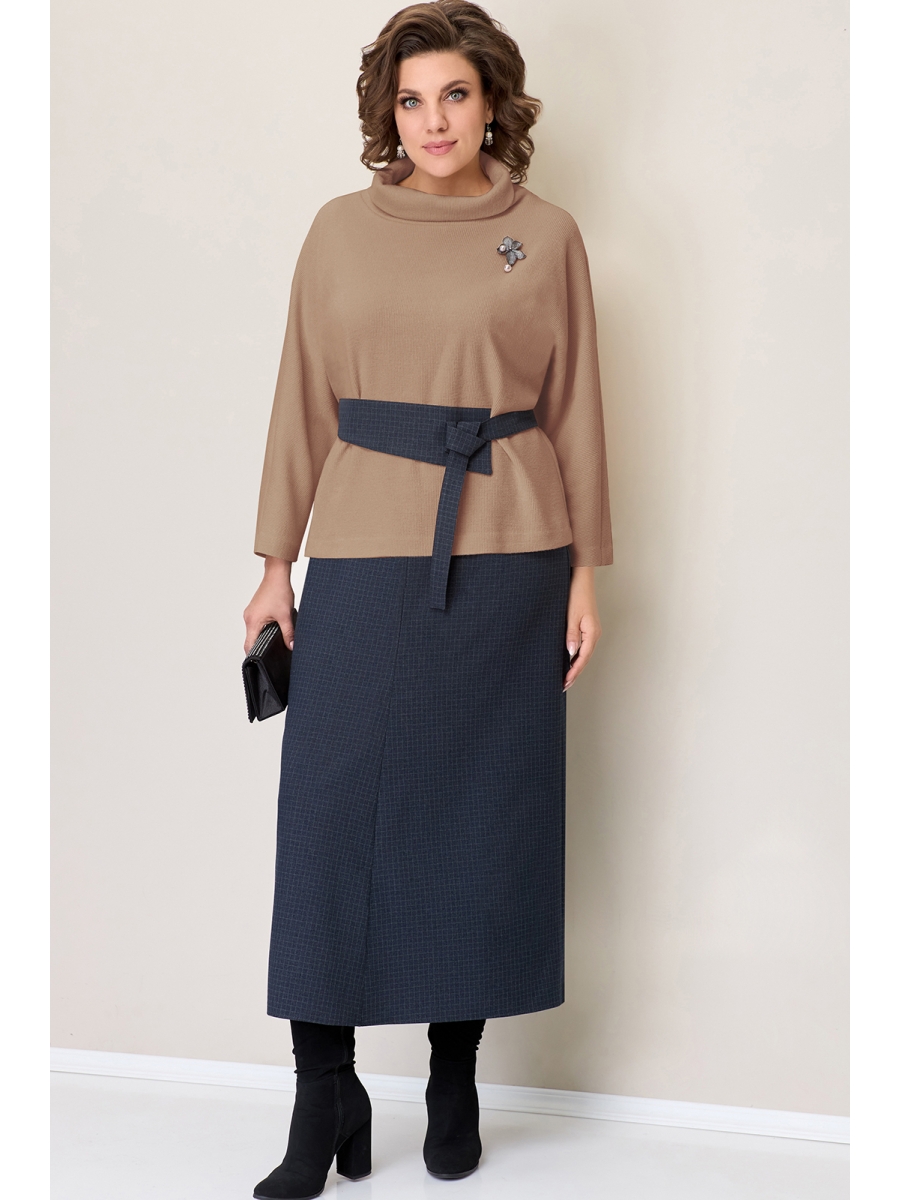 Изысканный комплект из трикотажного джемпера и юбки из текстильной ткани.
