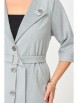 Жакет прямой, распашной по переду и с двубортной застежкой на петли-пуговицы и раскладными лацканами. С одной стороны имеется функциональный карман. К жакету прилагается съемный пояс на полукольцах, левый борт украшен нашивкой.