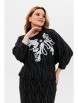 Джемпер свободного кроя выполнен из плотного трикотажа. По переду украшен вышивкой, благодаря чему изделие смотрится нарядно. Горловина круглая, рукав реглан "летучая мышь". Низ и рукава на манжете из основной ткани.