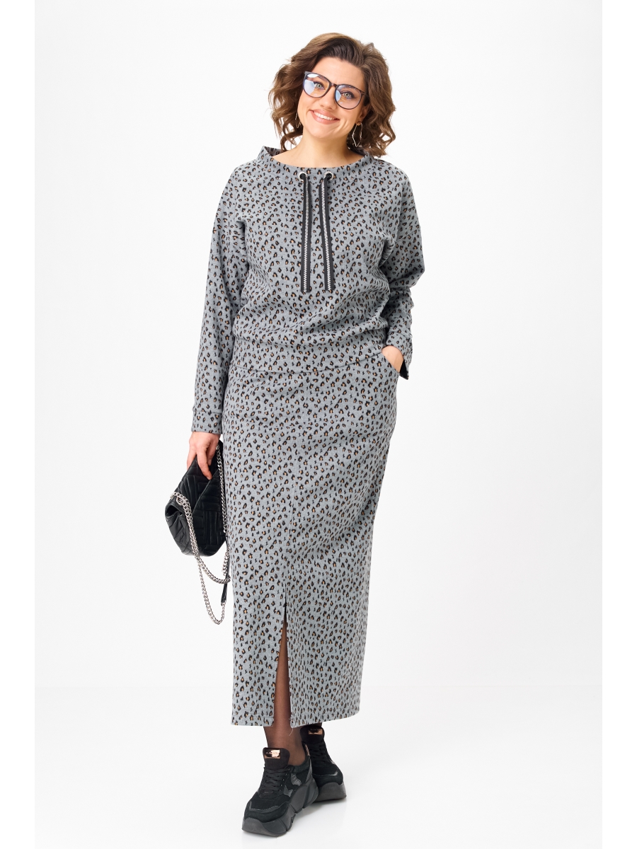 Плотный трикотаж хорошо держит силуэт, не «плывёт» и не вытягивается, при этом остаётся комфортным в движении. Принт — деликатный, небанальный, выглядит дорого и актуально вне сезона.