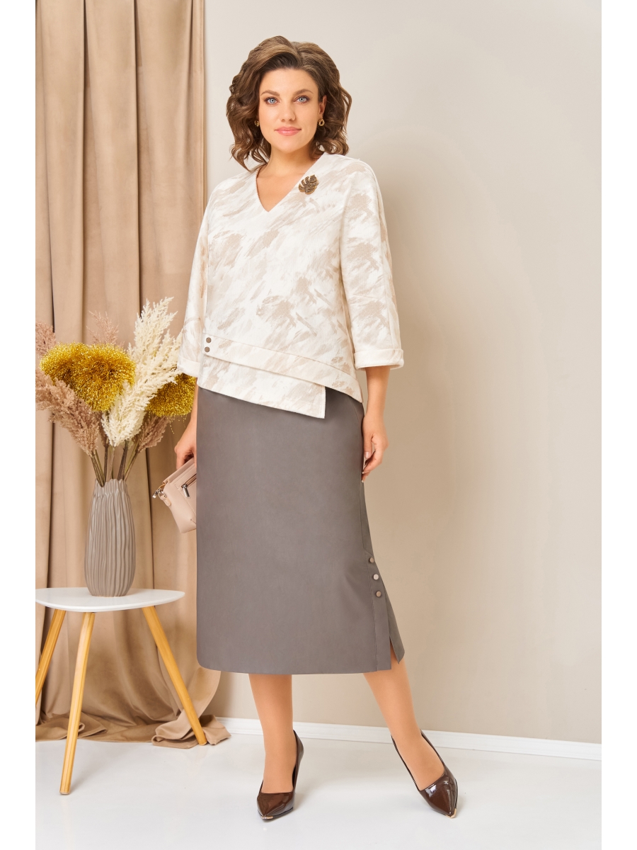 Юбочный костюм 1456 молочно-бежевый, VOLNA – купить с доставкой в Санкт-петербурге на peterburg.belpodium.ru