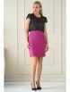 (в размерах 52-58) юбка полуприлегающего силуэта к низу чуть зауженная, на подкладке, на притачном поясе, по боковым на резинке, застежка обработана в среднем шве заднего полотнища на тесьму-молнию и на пуговицу по поясу. Переднее полотнище с талевыми вытачками. Заднее полотнище с талевыми вытачками и средним швом заканчивающимся шлицей.