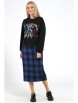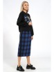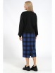 Юбка полуприлегающего силуэта книзу чуть заужена, на притачном поясе. Застёжка на тесьму-молнию по среднему шву спинки на потайную тесьму-молнию на петлю и пуговицу по поясу. Перед с боковыми частями выполнены из основной ткани (однотон) и талевыми выточками. Спинка со средним швом заканчивающаяся шлицей и талевыми вытачками.