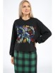 Блуза свободного силуэта, со спеченной линией плеча, декорирована по переду вышивкой. Рукава, одношовные, втачные, понизу со сборкой и притачными манжетами. По горловине втачная бейка.
