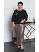 Комплект состоит из однотонной блузки и юбки длины «миди» в пайетки.