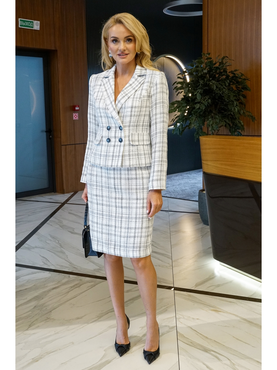 Юбочный костюм 2391 белая клетка, AlaniCollection – купить с доставкой в Санкт-петербурге на peterburg.belpodium.ru