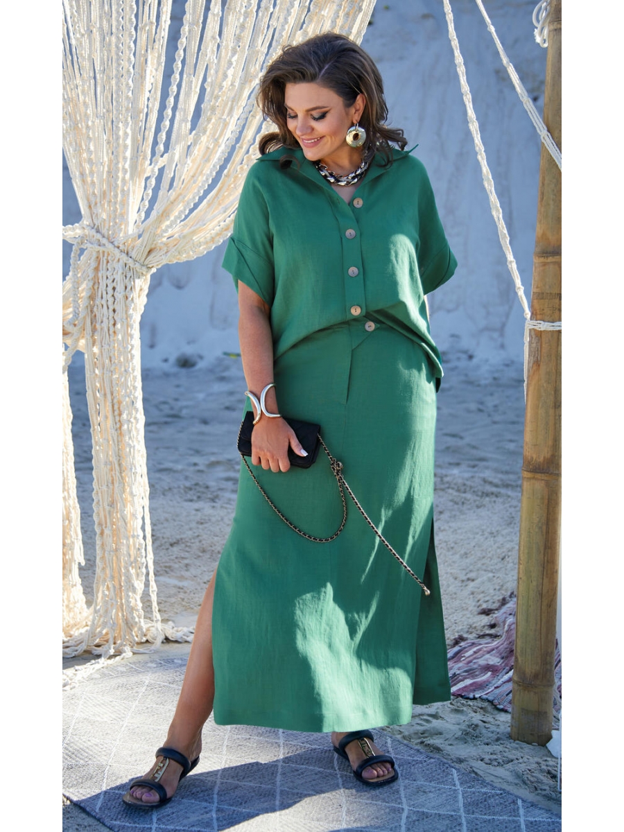 Шикарный летний женский, льняной костюм, состоящий из блузы и юбки, станет ярким акцентом в Вашем гардеробе.