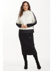 Юбка миди с боковым разрезом. По талии эластичная тесьма. Выполнена из черного трикотажа. Юбка дополнена из комфортной трикотажной подкладкой.