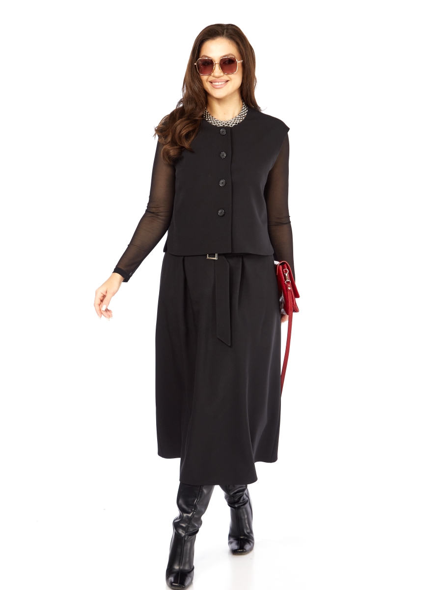 Шикарный, элегантный, красивый женский комплект, состоит из юбки и жилетки.