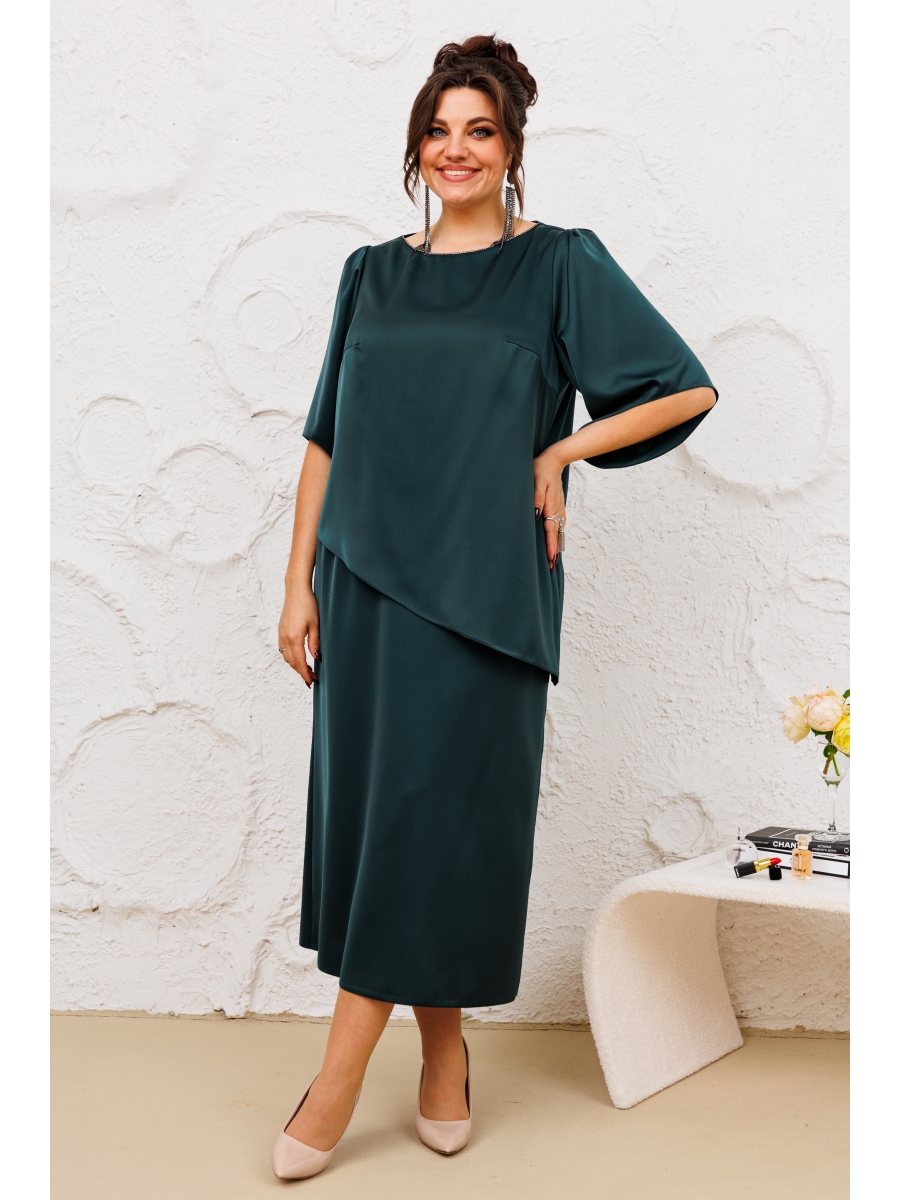 Блузон женский прямого силуэта с фигурным низом. Перед с 2-мя нагрудными вытачками. Спинка цельнокроеная. Горловина обточная, с фигурным вырезом "лодочка" без воротника, по переду горловина декорирована отделочной втачной тесьмой. Рукав втачной, прямой, одно шовный, длиной 3/4 с фигурным низом, окат рукава со встречной складкой. Блузон без плечевых накладок.