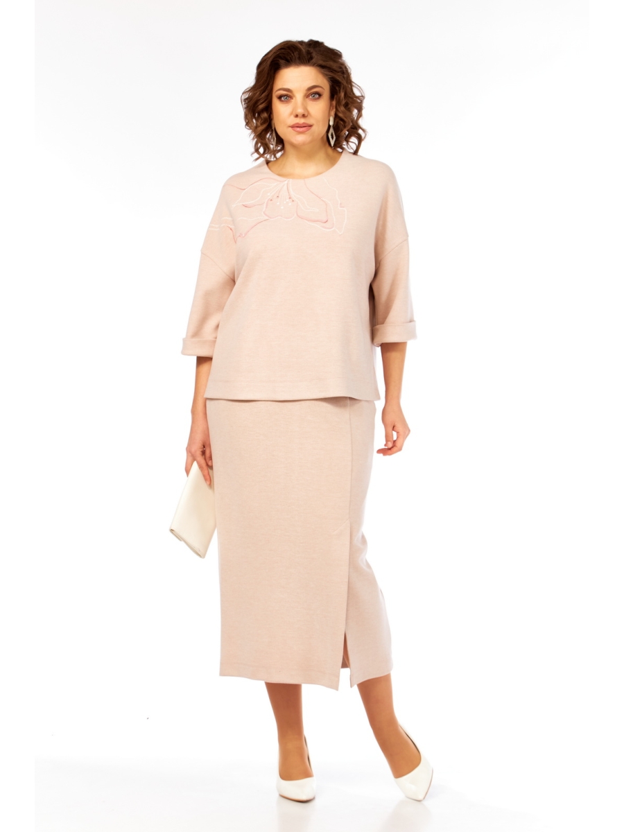 Костюм женский нарядно-повседневный, состоит из джемпера и юбки, выполнен из трикотажного полотна.