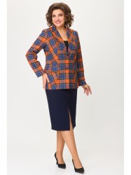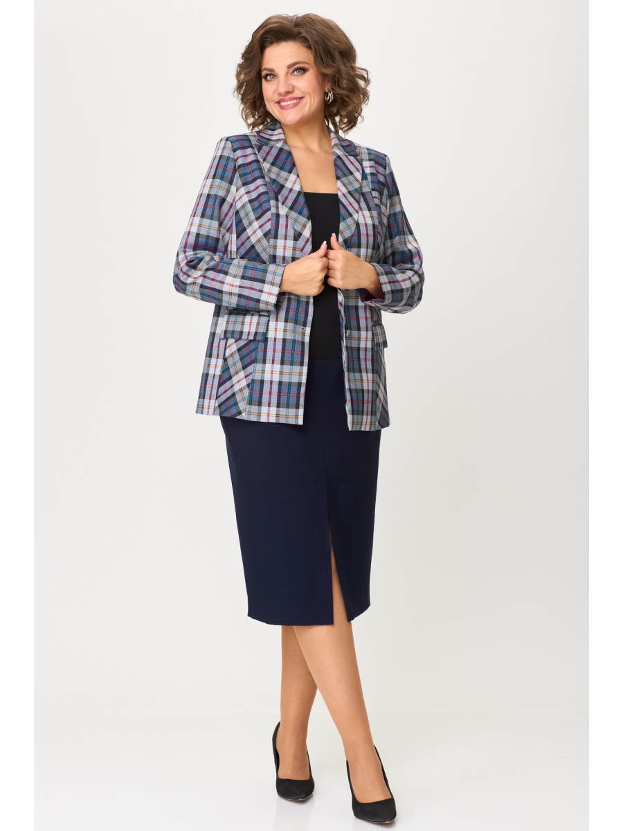 Юбочный костюм 412+597 синяя клетка+синий однотон, БелЭльСтиль – купить с доставкой в Санкт-петербурге на peterburg.belpodium.ru