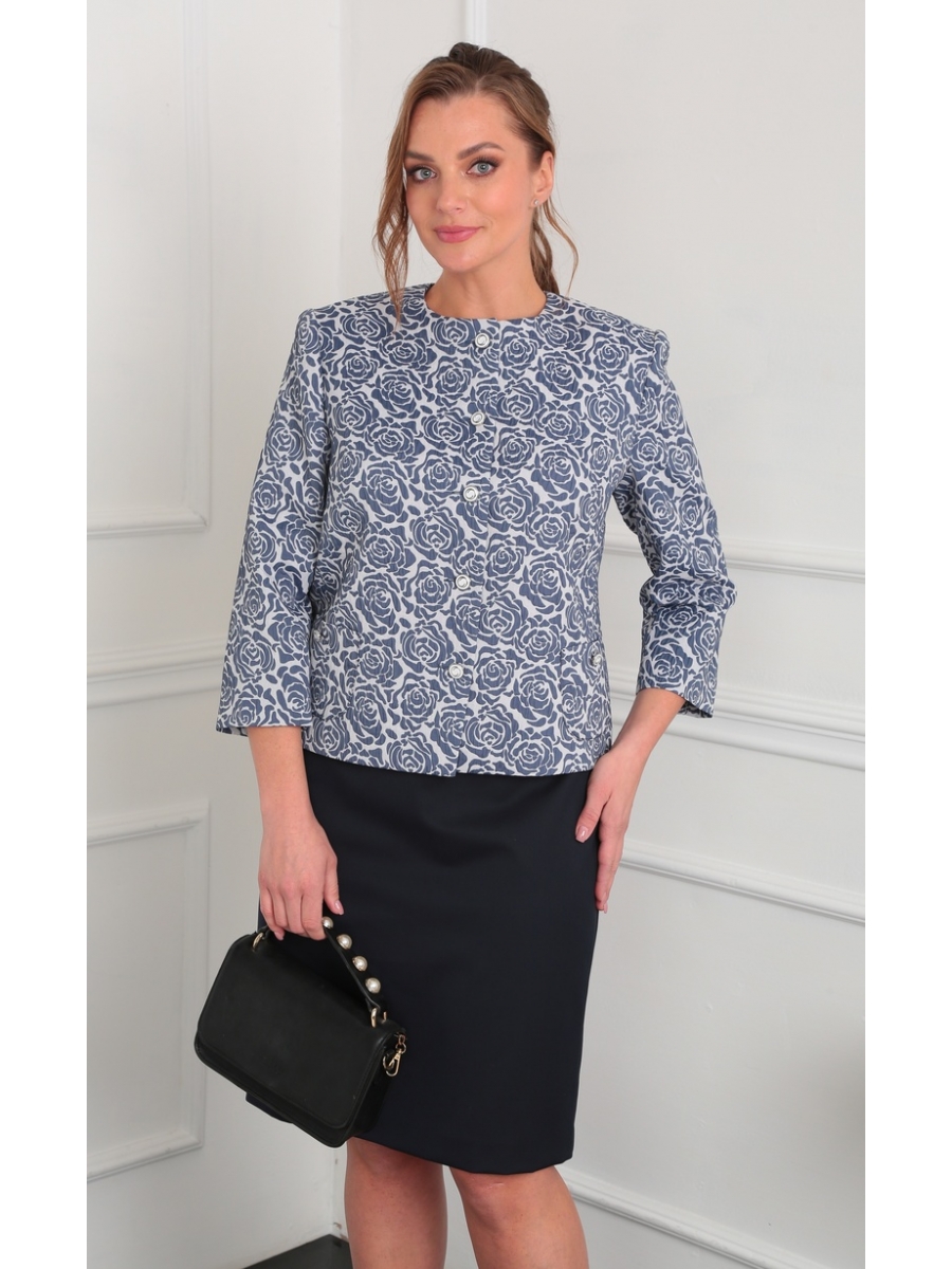 Жакет прямого силуэта. По переду цетральна бортовая застёжка на петли и пуговицы. Вырез горловины круглый.