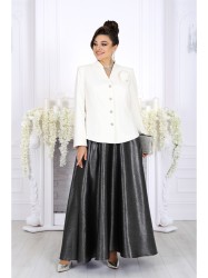 Когда нужно выступить в образе, где каждая деталь говорит о вкусе и статусе, этот комплект — точное попадание. Сочетание белого жакета и блестящей, струящейся юбки создаёт впечатление утончённой роскоши, а продуманный крой обеспечивает комфорт и свободу движений на всё мероприятие.