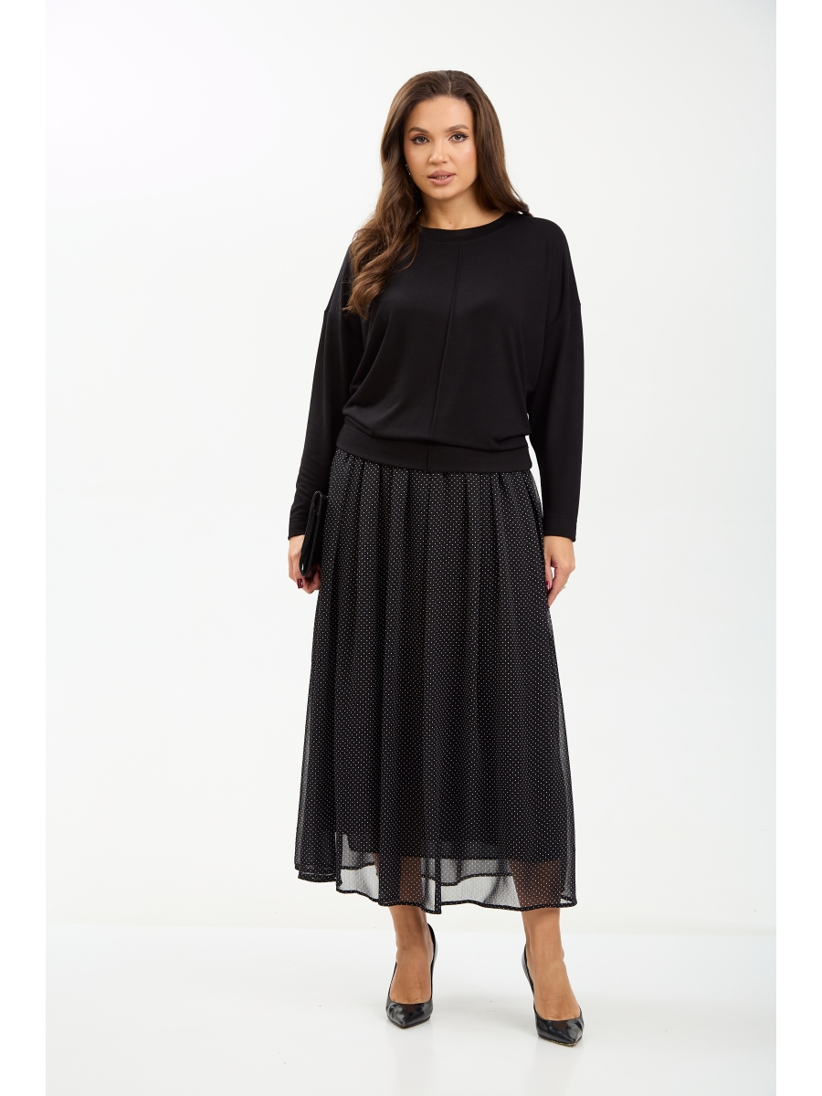 Юбка миди из шифона с принтом в мелкий горошек. Пояс на резинке. Юбка на подкладке.