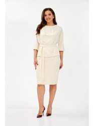 Юбка на поясе выполнена из кружевного полотна на подкладке из основной ткани. На поясе по бокам эластичная тесьма. По среднему шву задней половинки юбки молния, снизу разрез 13,5 см.