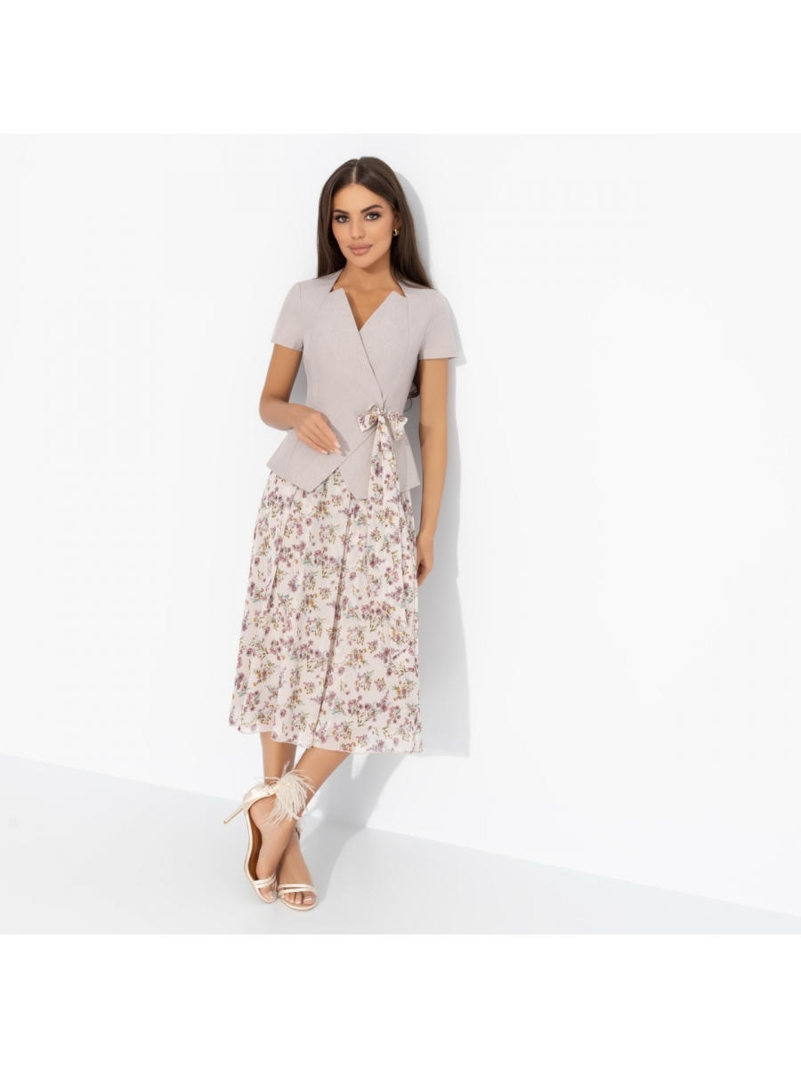 Смотря какой fabric, смотря какие details… Костюм от ЧАРУТТИ выглядит великолепно со всеми дитэйлс. Летящая юбка и жакет - как символ вашей элегантности и твердой убежденности в своей привлекательности. Комплект состоит из жакета приталенного силуэта с коротким рукавом и юбки в длине миди. Фигурный вырез зоны декольте. Пояс юбки на широкой резинке. Юбка с подкладом.