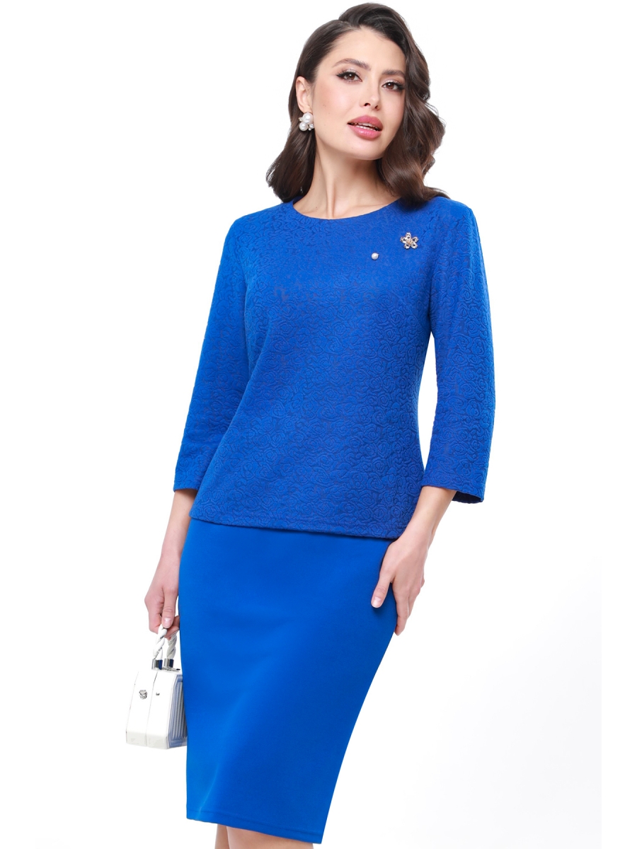 Классический деловой костюм с нотками романтичности. Привычная юбка-карандаш будет хороша и в этом костюме, и сможет составить пару любым другим блузкам из вашего гардероба. Блузка простого полуприлегающего силуэта - это придает образу нежность.