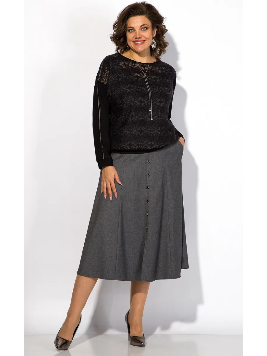 В комплекте идет эффектная A-образная юбка 8-клинка! Модель на притачном поясе с застежкой на тесьму-молнию по спинке. Перед с разрезом переходящий в имитацию застежки на навесные петли и пуговицы. В юбке присутствуют карманы и подкладка.